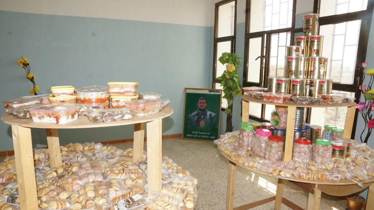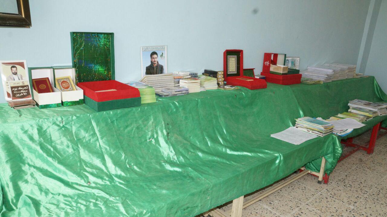 المعرض الذي أعده الجانب النسائي احتوى على عدد من الأعمال الفنية والتشكيلية واليدوية وعدد من الكتب الثقافية وصور لشهداء المنطقة .