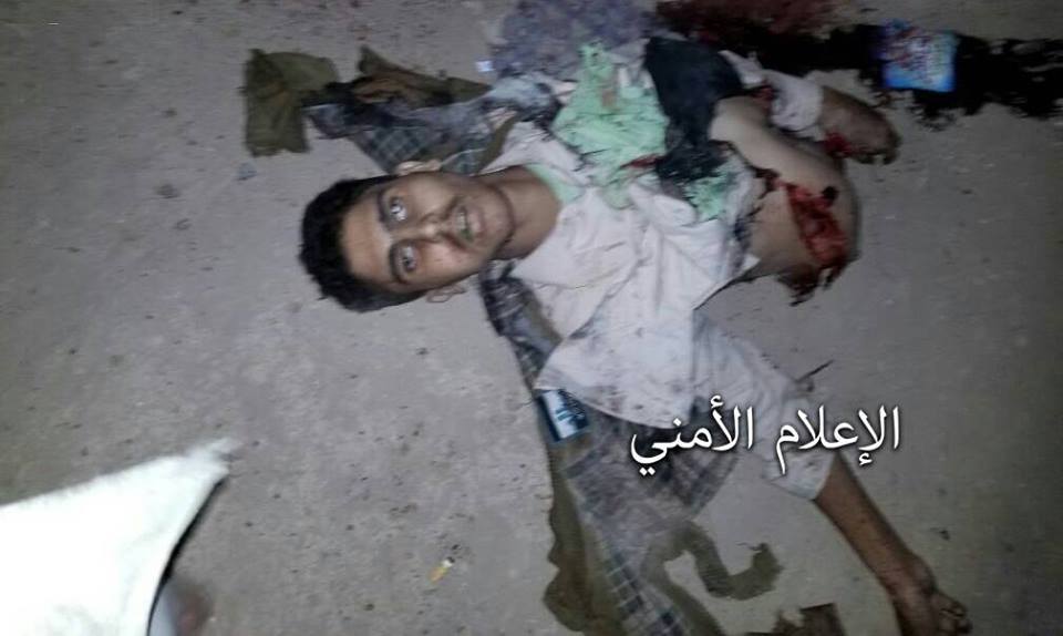مرفق مع التقرير صورة الإنتحاري في مديرية دمت بمحافظة الضالع التي وزعها الإعلام الحربي.