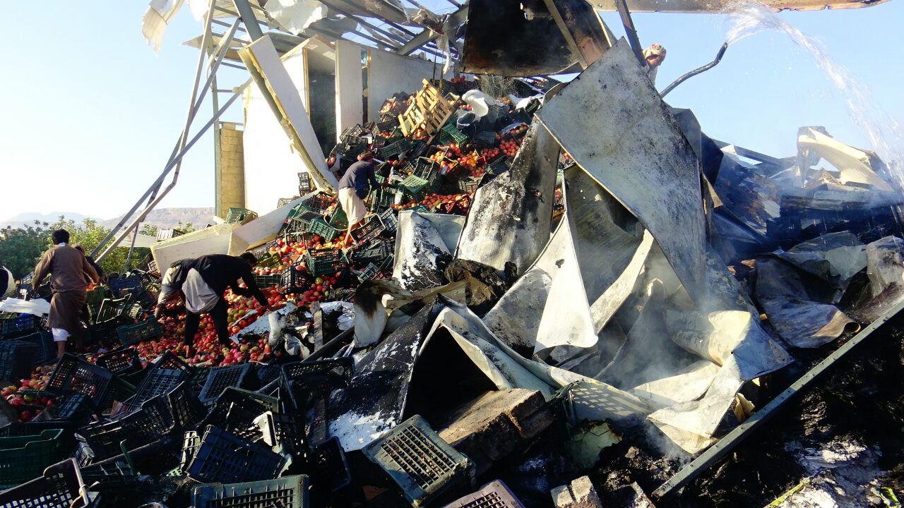 واضاف أن من بين الشهداء الثلاثة عامل سوري وجريح سوري آخر كانوا يعملون في نقل الرمان من اليمن الى السعودية سقطوا في الغارة التي استهدفت ثلاجة زراعية في مديرية مجز ، فيما لايزال البحث جار عن مفقودين .