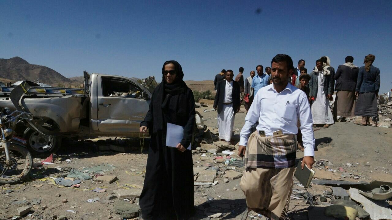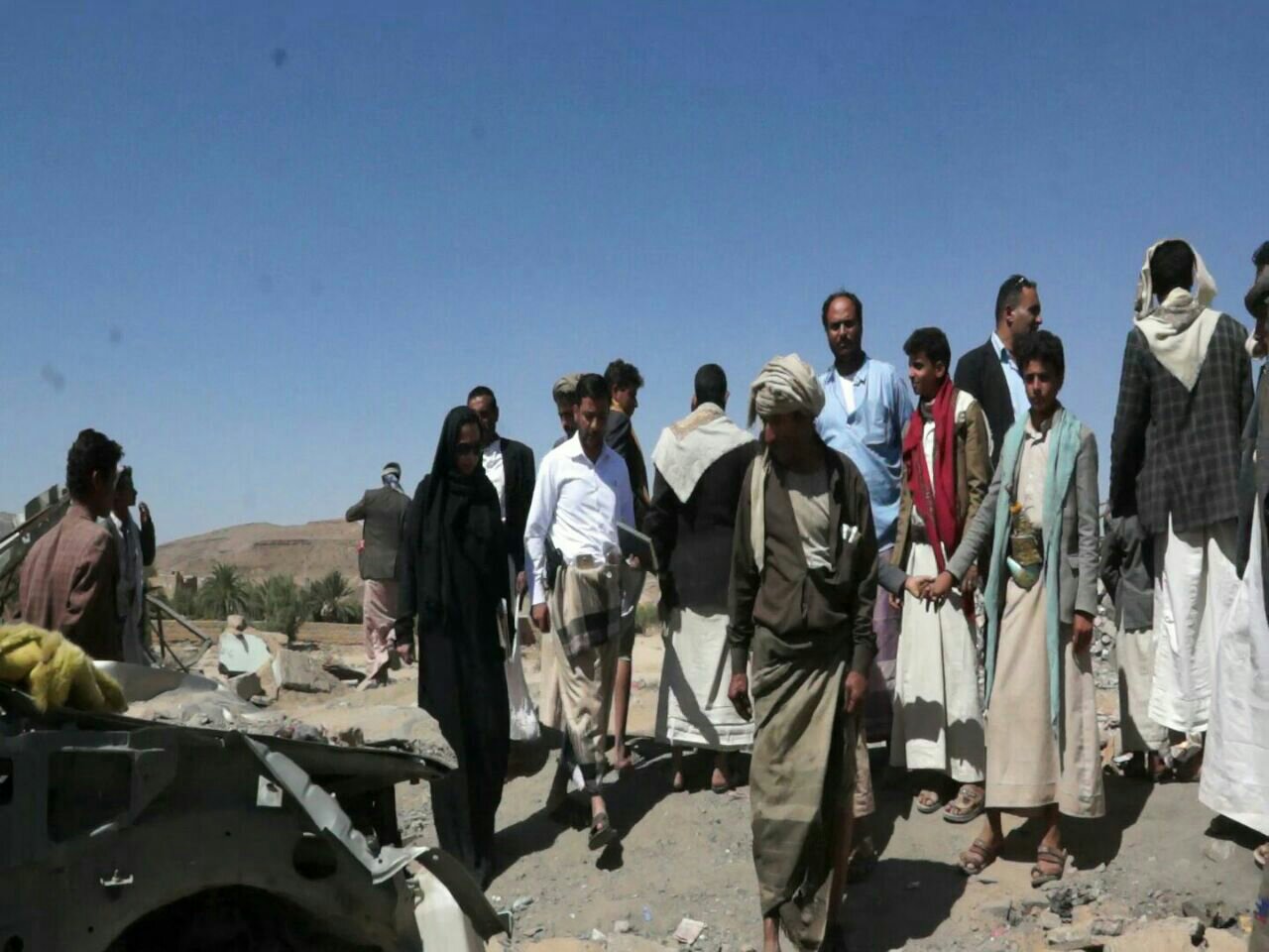 بالصور | وزيرة حقوق الإنسان تزور مسرح مجزرة العدوان بسوق علاف في صعدة