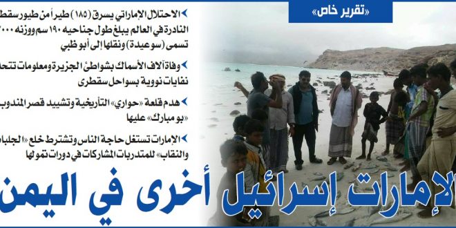 ويمارِسُ الاحتلالُ أنشطتَه الاستعمارية والاستيطانية في جزيرة سقطرى مستغلاً حاجة الناس وظروفَهم المعيشية لتهيئة المجتمع المحلي للقبول بأي قرار لصالح مشروعه باختلاف عناوينه.