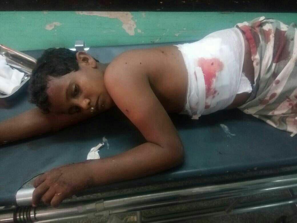 Image الحديدة :صورمن اصابة 3 اطفال حالتهم خطرة جراء العبث ببقايا قنبلة عنقودية من مخلفات العدوان في منطقة الشجيرة بمديرية الدريهمي
