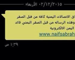 وبحسب رسائل وصلت للهواتف عن اختراق نفذه مخترق يدعى الصقر اليماني.