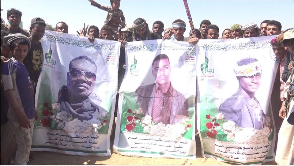 بمشاركة رسمية ومدنية تشييع ثلاثة شهداء اخوة من احفاد بلال بصعدة (صور)