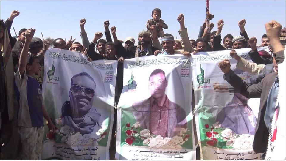 ، انطلقت مراسم التشييع من جامع الامام الهادي بمدينة صعدة ليوارى الثرى الشهداء الثلاثة وهم غازي صالح يحيى حسين وعبدالرحمن صالح يحيى حسين ورمزي صالح يحيى حسين الذويبي