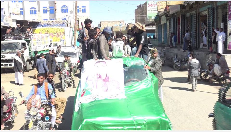وفي موكب جنائزي مهيب تقدمه محافظ المحافظة محمد جابر عوض ورئيس مؤسسة الشهداء احمد جران ومندوب من مكتب السيد عبدالملك و عدد من الوكلاء والمسؤولين وجمع غفير من المواطنيين