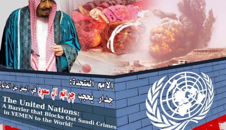 الأمم المتحدة جدار يحجب جرآئم أمريكا وآل سعود في اليمن عن العالم.