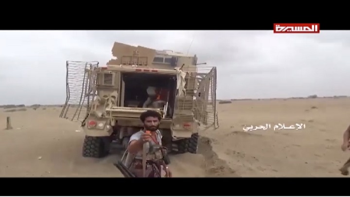 وتظهر على المدرعات شعار بما يسمى ألوية العمالقة التي يتباها بها الغزاة والمحتلون، الذين يتجرعون الموت الزعاف، على أيدي مجاهدي الجيش واللجان الشعبية.