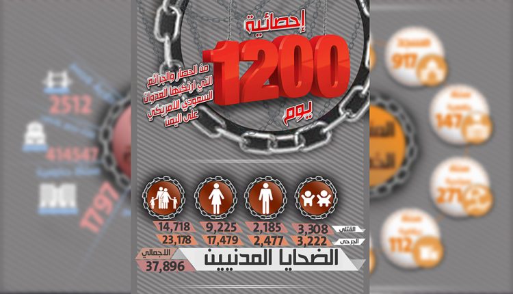انفوجرافيك إحصائية 1200 يوم من العدوان السعودي الأمريكي على اليمن