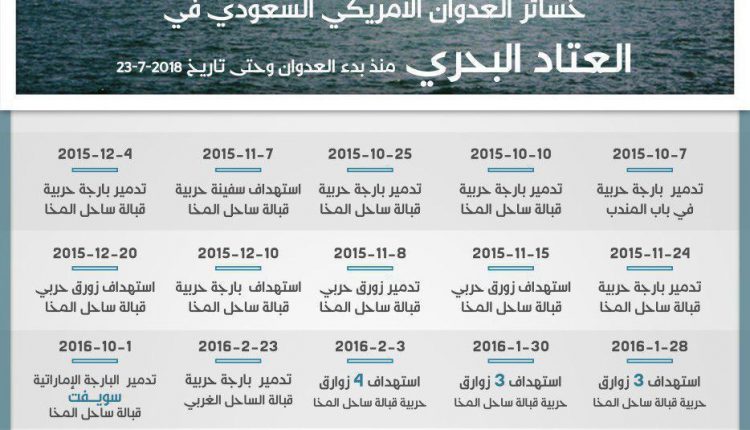 احصائية خسائر العدوان الأمريكي والسعودي في العتاد البحري منذ بداية العدوان حتى الآن