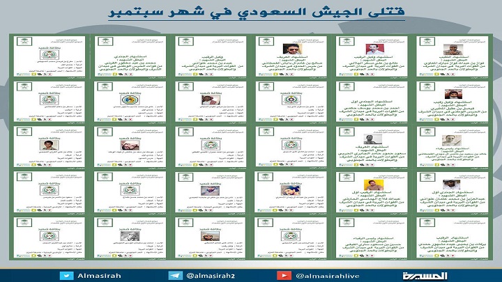 وفيما يلي أسماء قتلى وجرحى الجيش السعودي خلال شهر سبتمبر: