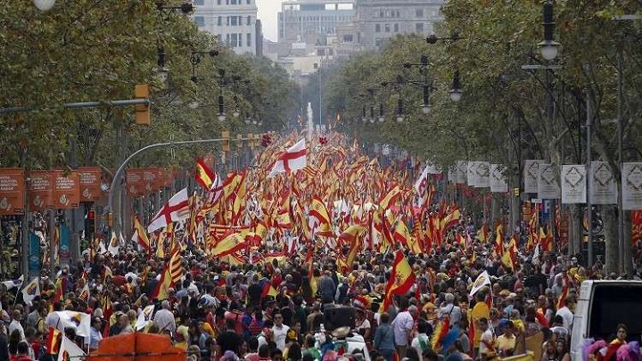 اليوم الوطني لإسبانيا برشلونة تشهد مظاهرات مؤيدة للوحدة
