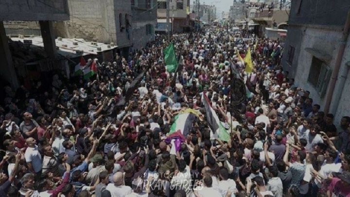 ووفقا لوكالة “فلسطين اليوم” فقد اكتست غزة بالسواد حدداً على أرواح الشهداء بعد ارتكاب العدو الصهيوني لمجزرة في صفوف المتظاهرين السلميين خلال مظاهرات مسيرة العودة واصراراهم على إيصال صوتهم بحقهم في الحياة، ورفضهم لبقاء الاحتلال.