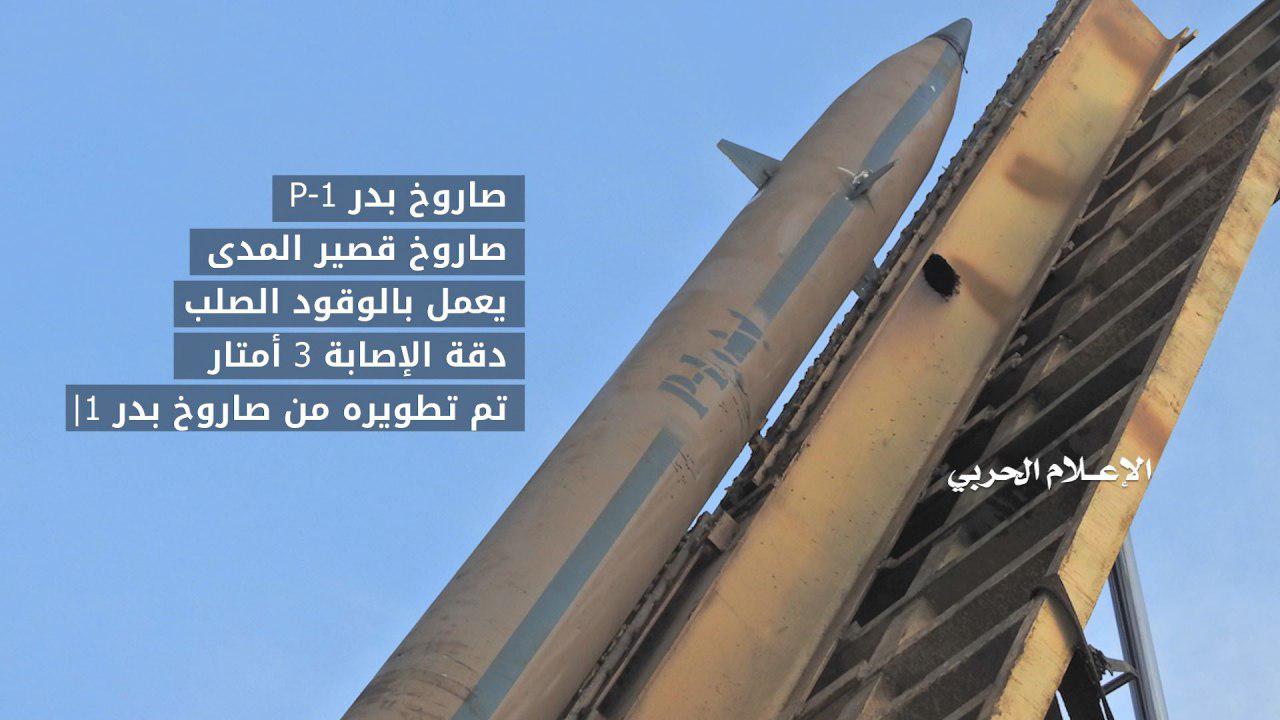 وكانت وحدة القوة الصاروخية للجيش واللجان الشعبية قد أعلنت يوم أمس عن صاروخ باليستي قصير المدي من الجيل الذكي باسم بدر P-1 بعد نجاح عدة تجارب كان آخرها على معسكر مستحدث للغزاة السودانيين في الساحل الغربي