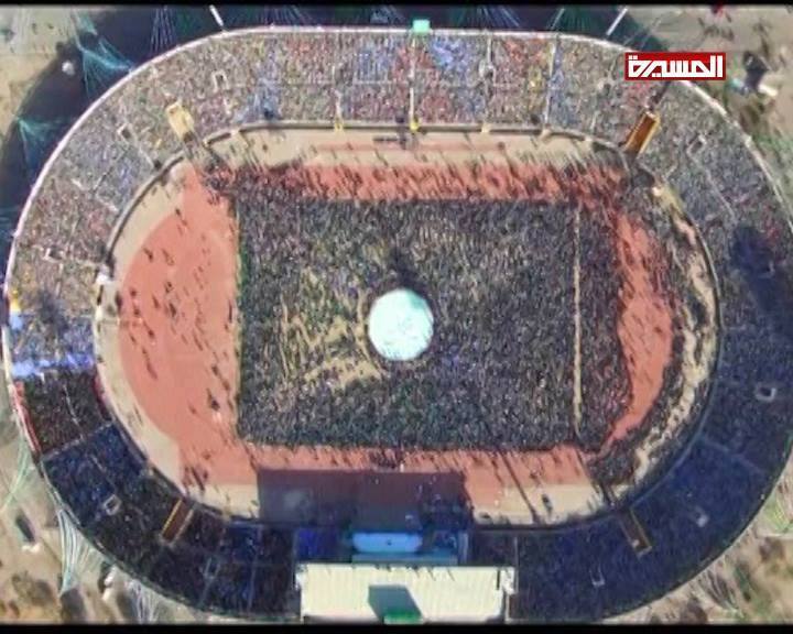 وأظهرت الصور التي التقطت بالكاميرا صورا جميلة لسيول الحشود التي تقاطرت من مختلف مناطق العاصمة صنعاء والمحافظات الأخرى ديكور ساحة الحشد في ملعب مدينة الثورة الرياضية .
