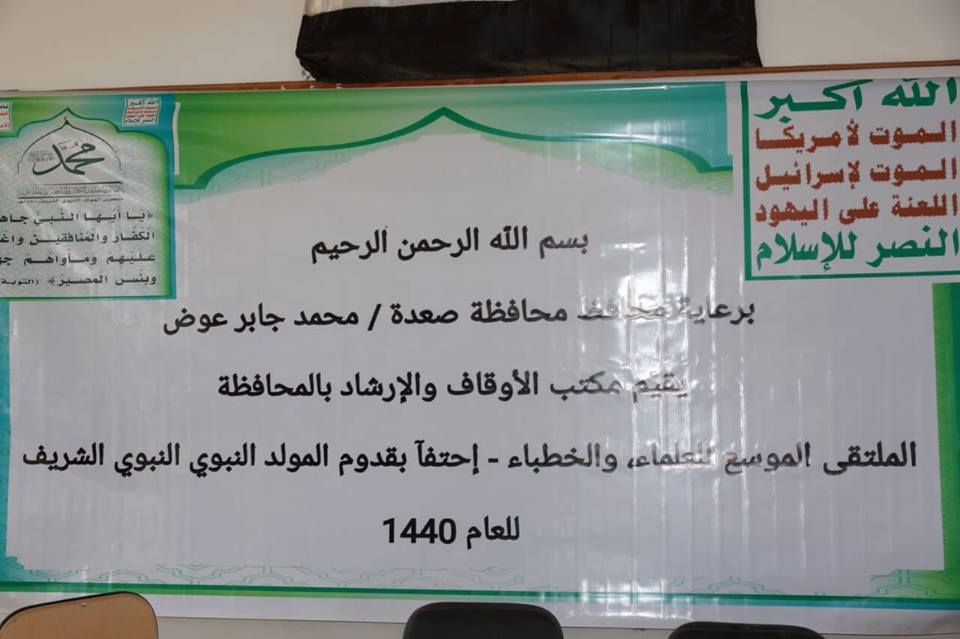 نظم مكتب الأوقاف والإرشاد بمحافظة صعدة ، اليوم، لقاء موسع للعلماء والخطباء والمرشدين احتفاء بذكرى المولد النبوي الشريف على صاحبه أفضل الصلاة وأتم التسليم.
