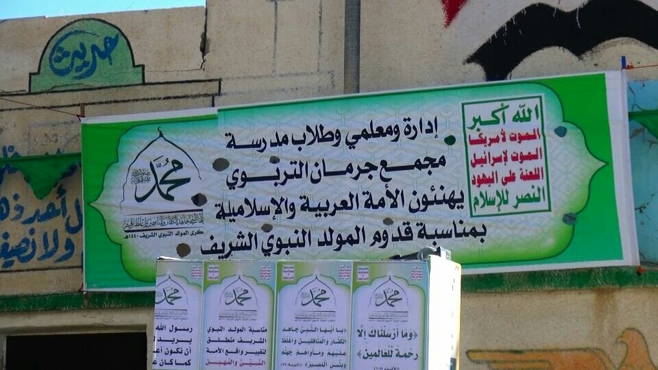 نظم معلموا وطلاب مجمع جرمان التربوي بمديرية صعدة فعالية صباحية إحياء لذكرى المولد النبوي الشريف .