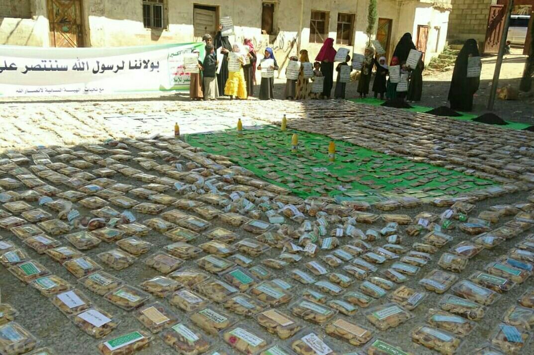 واحتوت القافلة على مبالغ مالية وسمن ومئات الاطباق من الكعك والكيك .