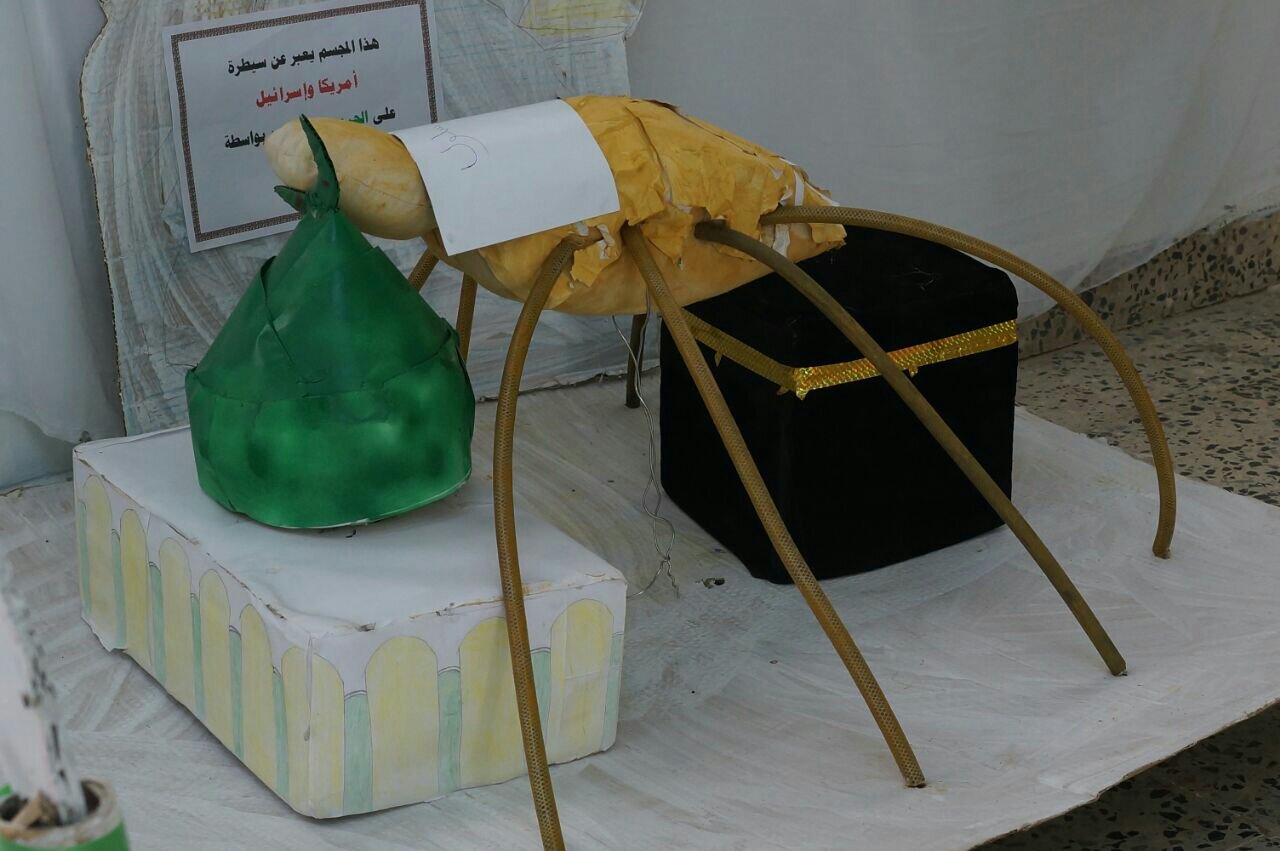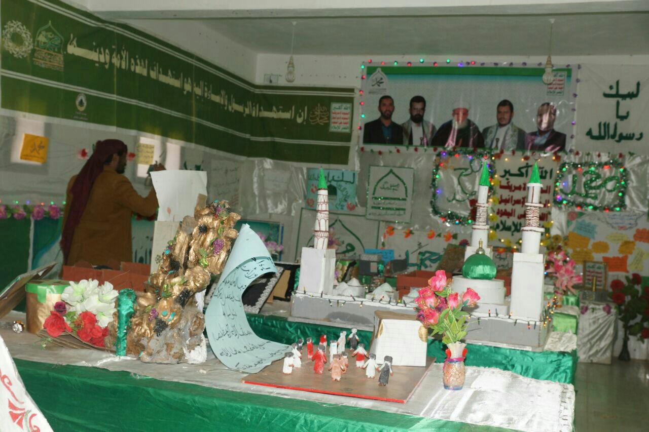احتوى المعرضان على عشرات المجسمات واللوحات التشكيلية والفنية والمشغولات اليدوية التي أظهرت إحياء شعائر مناسبة ذكرى المولد النبوي الشريف بما يعزز ثقة المؤمن بربه ورسوله ، وكذلك اظهرت صمود وثبات الشعب اليمني أمام همجية العدوان الأمريكي .