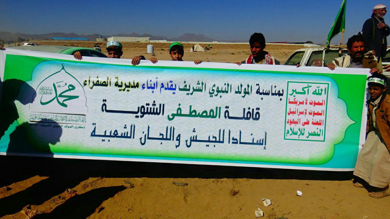 سيًر أبناء مديرية الصفراء بمحافظة صعدة اليوم قافلة مالية وشتوية دعماً للمرابطين في الجبهات بمناسبة ذكرى المولد النبوي .