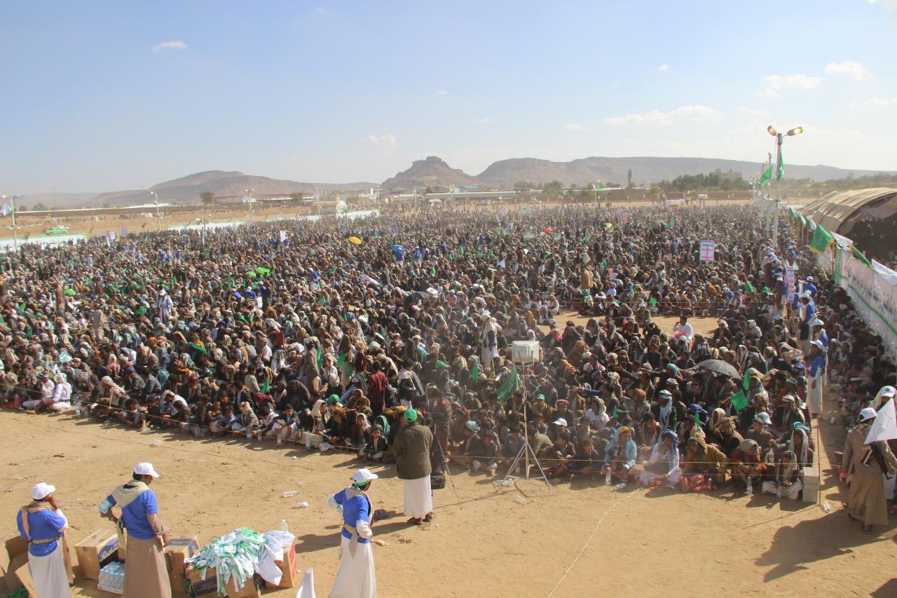 وأكد الحشود أن احتفالهم اليوم رغم تكالب قوى الإجرام والشر في العالم على الشعب اليمني هو لتجديد ولائهم وعهدهم لنصرة رسالة رسول الله علية أفضل الصلاة والتسليم ولنصرة رسالة رسول البشرية كلها.