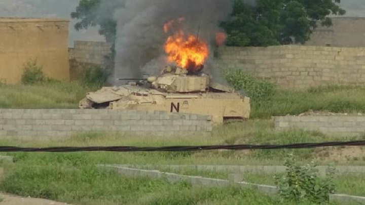 استهدف مجاهدو الجيش واللجان الشعبية يوم الاثنين دبابة سعودية نوع أبرامز بصاروخ موجه في جيزان.