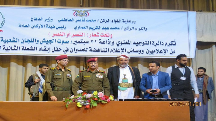 وفي حفل التكريم الذي نظمته دائرة التوجيه المعنوي للقوات المسلحة بحضور رئيس مجلس التلاحم القبلي الشيخ ضيف الله رسام ومدير الدائرة متحدث القوات المسلحة العميد يحيى سريع، أكد وزير الدفاع أهمية الدور الذي يضطلع به الإعلاميين في مواجهة ادعاءات وسائل إعلام العدوان.