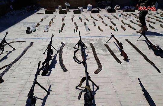 عثرت الجهات المختصة خلال متابعتها أعمال تأمين المناطق التي طهرها الجيش السوري من الإرهاب على كميات من الأسلحة والذخيرة في محيط قرية تلدهب بريف حمص الشمالي.