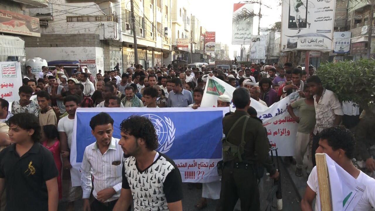 واستنكر المشاركون في المسيرة تمادي تحالف العدوان في خرق اتفاق السويد في تحد سافر للمجتمع الدولي والقوانين والمواثيق الإنسانية، مطالبين الأمم المتحدة بموقف جاد تجاه هذه الخروقات واتخاذ قرار يلزم العدوان ومرتزقته لوقف اطلاق النار والانتهاكات المتواصلة ومحاولات الانقلاب على التفاهمات ومساعي تحقيق السلام ووقف العدوان والحصار.