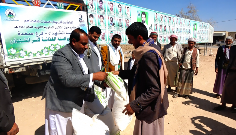 تدشين توزيع سلة غذائية لأسر الشهداء بصعدة بمناسبة الذكرى السنوية للشهيد