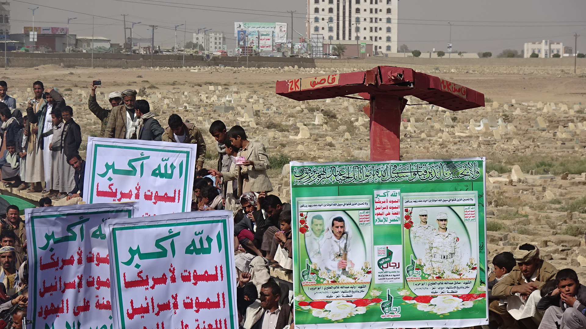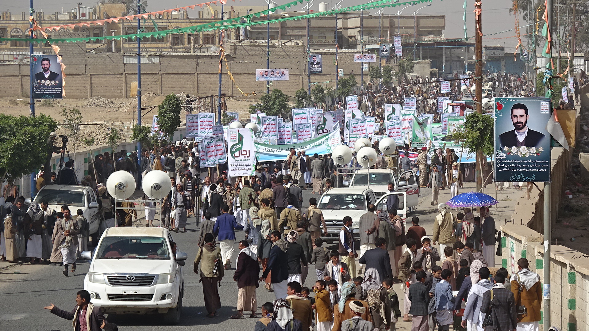 وحمل المشاركون في المسيرة لافتات الحرية الرافضة للهيمنة الأمريكية وسياستها في المنطقة، وشعارات ولافتات المناسبة وصور الشهداء .