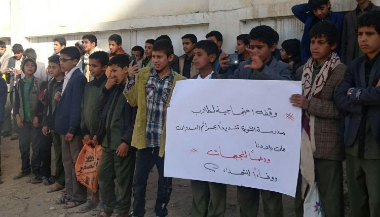 واستنكر الطلاب والمعلمين تمادي قوی العدوان في الانتهاكات والجرائم بحق أطفال ونساء اليمن.