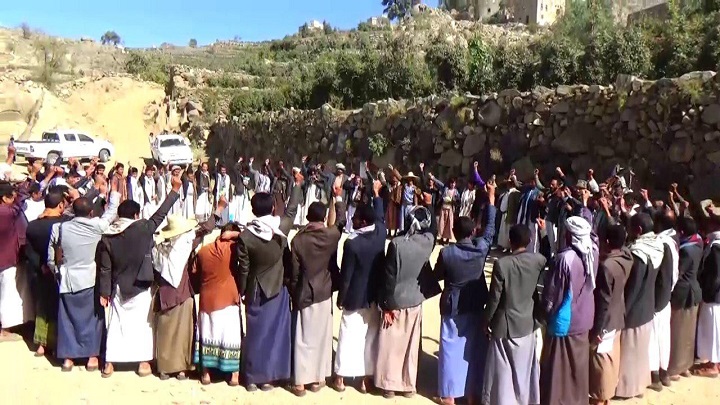 نظم أبناء منطقة بنلقم في مديرية رازح الحدودية غرب صعدة وقفة احتجاجية تنديدًا باستمرار جرائم العدوان.