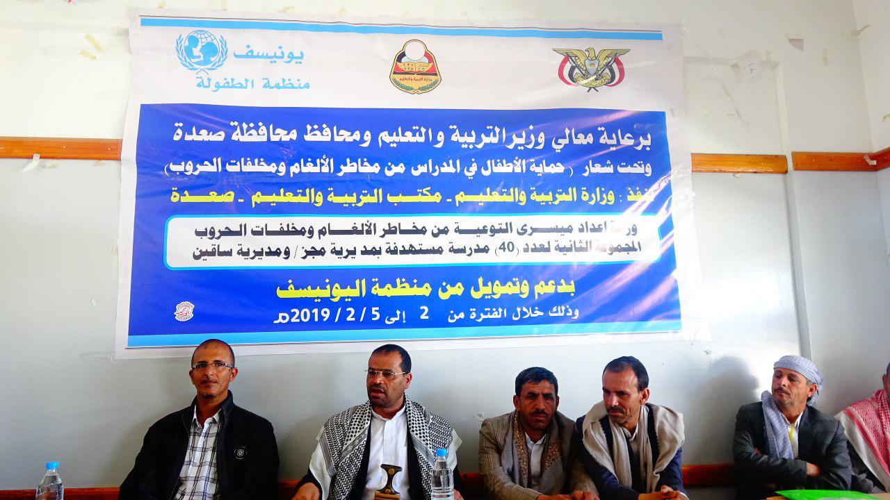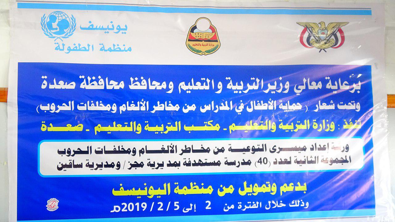 بدأت بمحافظة صعدة اليوم دورة تدريبية خاصة بمخاطر الالغام ومخلفات الحروب ينظمها على مدى أربعة ايام قطاع التعليم بالوزارة بالتعاون مع السلطة المحلية وتمويل منظمة اليونيسف .