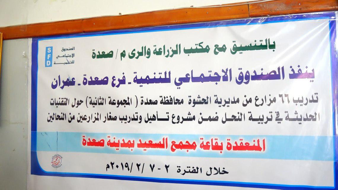 بدأت اليوم بمحافظة صعدة دورة تدريبية حول اعداد المدربين في مجال تربية نحل العسل (المرحلة الثانية ) في اطار مشروع تدريب النحالين بالمحافظة بتمويل من الصندوق الاجتماعي للتنمية فرع عمران صعدة بالتنسيق مع مكتب الزراعة والري بالمحافظة.