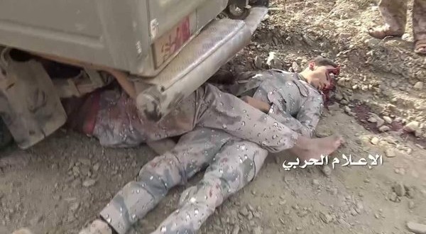 وأوضح مصدر عسكري أن وحدة القناصة بالجيش واللجان قنصت جنديين سعوديين شرق جبل جحفان بجيزان، فيما أحرقت وحدات أخرى طقما عسكريا للجيش السعودي بجبهة الفريضة بالقطاع عينه.