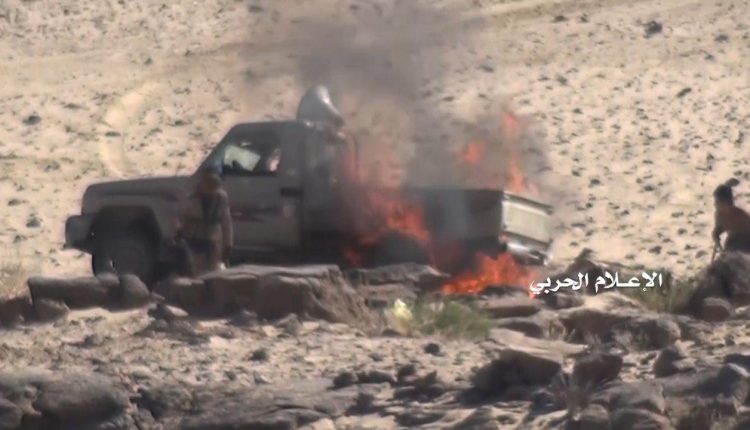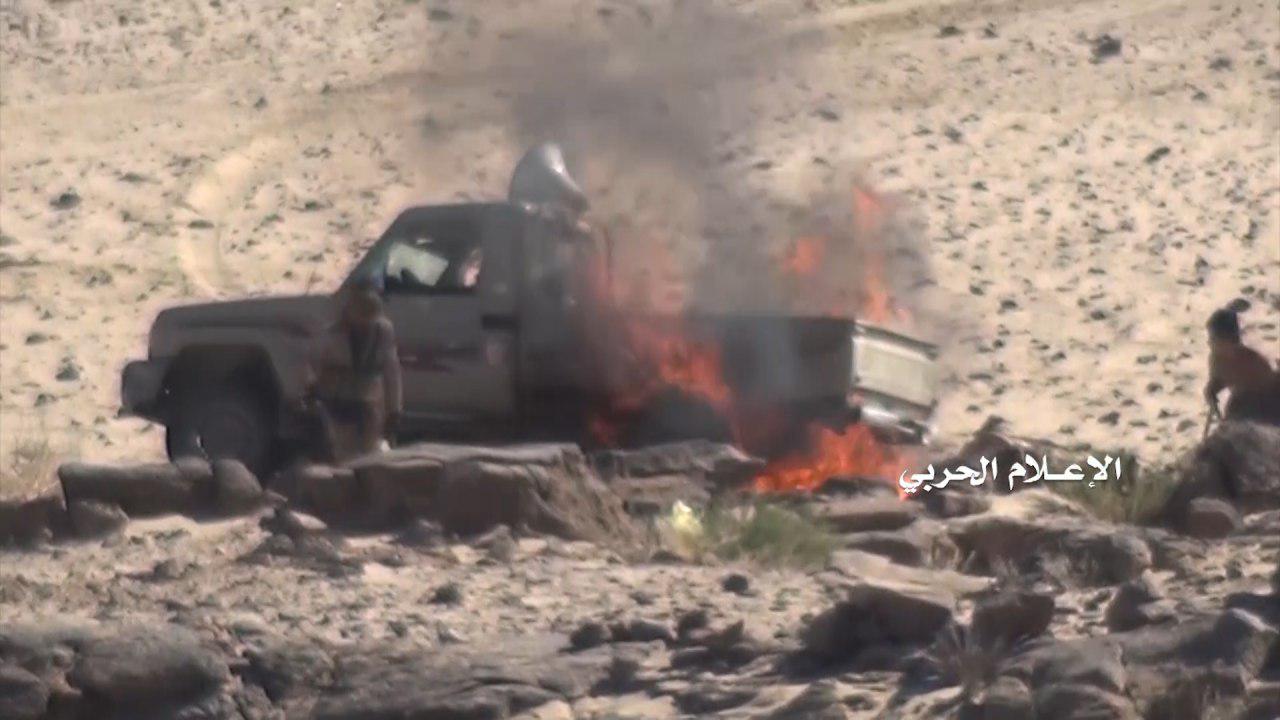 مصدر عسكري أكد أن وحدة الهندسة في الجيش واللجان الشعبية دمرت شاحنة محملة بالأسلحة والذخائر بعبوة ناسفة في جبهة المهاشمة ، كما دمرت آلية أخرى محملة بالمنافقين بعبوة ناسفة في جبهة الخليفين بمديرية خب والشعف.