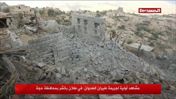 واستشهدت 20 امرأة وطفل اليوم الأحد كحصيلة أولية إثر غارات لطيران العدوان السعودي الأمريكي استهدفت منازل المواطنين في طلان بمديرية كشر، حيث لازالت عمليات البحث وانتشال الضحايا مستمرة بين أنقاض المنازل في طلان بكشر ، بحسب مراسلنا في حجة.