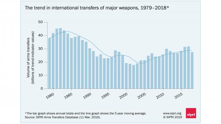 ونوه التقرير إلى ازداد تدفق الأسلحة إلى الشرق الأوسط بين عامي 2009 – 2013، و2014–2018، بينما كان هناك انخفاض في التدفقات إلى جميع المناطق الأخرى.