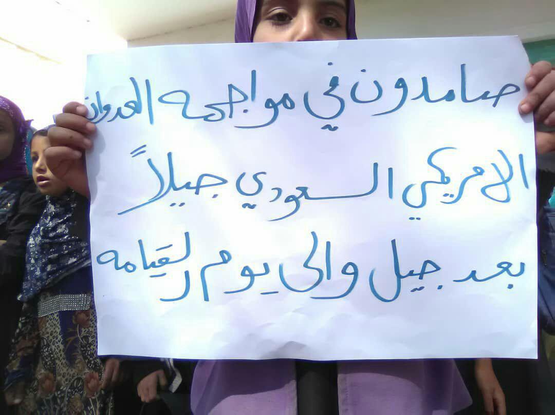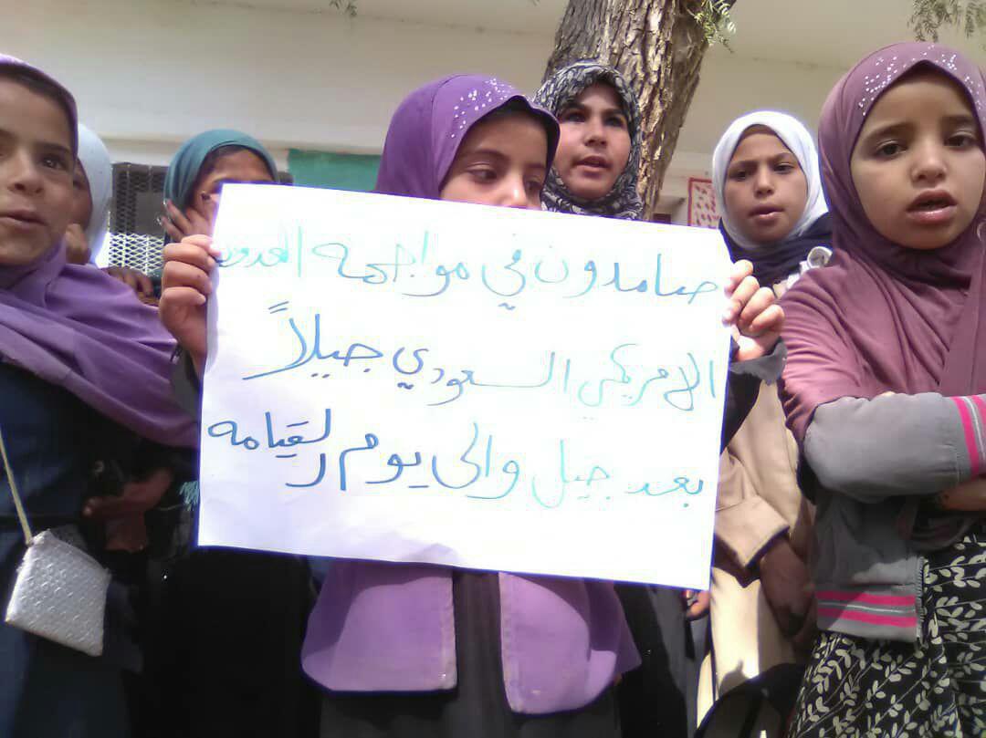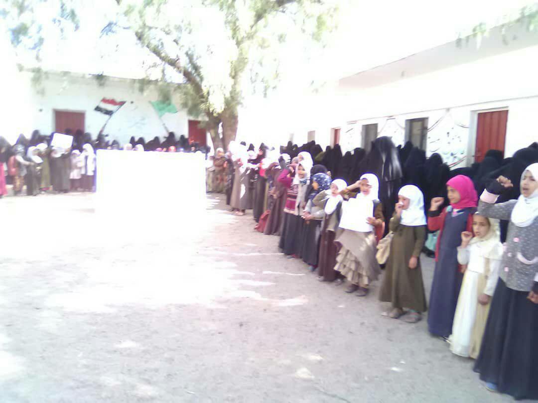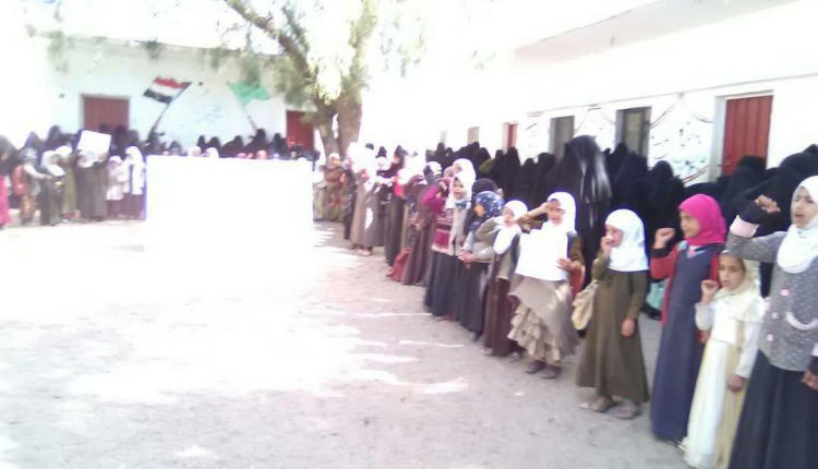 نضمت الهيئة النسايئة الثقافية العامة لانصار الله بمديرية ساقين بمحافظة صعدة وقفة احتجاجية تنديدا بالجريمة البشعة التي ارتكبها طيران تحالف العدوان السعودي الأمريكي في مديرية كشر بمحافظة حجة التي راح ضحيتها عشرات الشهداء والجرحى جلهم من النساء والأطفال .
