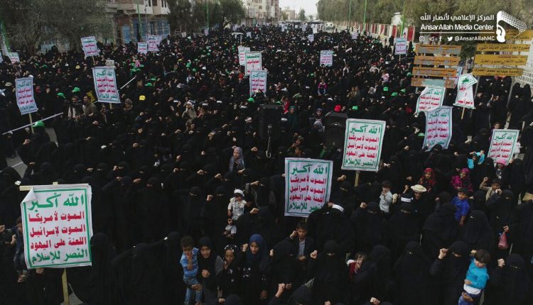 مسيرة نسائية حاشدة بالعاصمة صنعاء تندد بمجزرة العدوان بحق النساء والأطفال بكشر (صور)