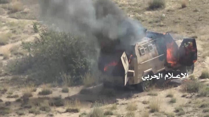 ولفت المصدر إلى إحراق مدرعة عسكرية سعودية بصاروخ موجه قبالة منفذ علب بذات المحور.