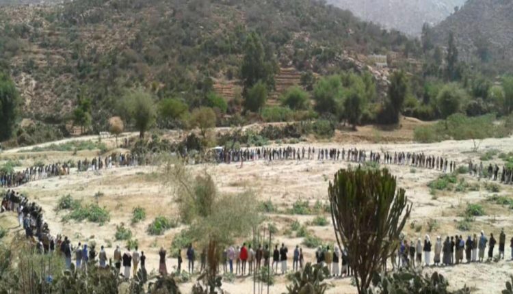 نظم أبناء مديرية السلفية بمحافظة ريمة اليوم وقفة للتنديد بجريمة كشر محافظة حجة ومرور أربعة أعوام من الصمود في مواجهة العدوان الأمريكي السعودي الإماراتي.