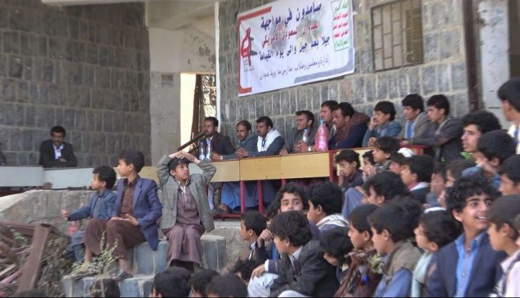 نظم معلموا وطلاب مدارس مديرية حيدان بمحافظة صعدة فعالية خطابية ضمن فعاليات أربعة أعوام من الصمود.