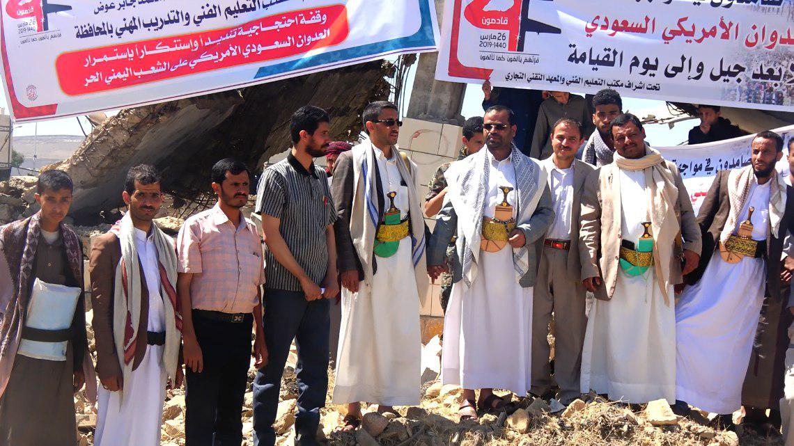 نظم مكتب التعليم الفني والمعهد التقني التجاري ومعهد إكسلانس للغات والكمبيوتر ومعهد الرواد للغات والعلوم الإدارية والتقنية بمحافظة صعدة وقفة إحتجاجية بمناسبة مرور أربعة أعوام من الصمود