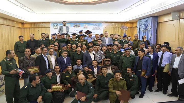 احتفل قطاع الموارد البشرية والمالية بوزارة الداخلية اليوم الأحد بتخرج دفعة أمنية قتالية جديدة دفعة (4 أعوام من الصمود ) استفاد منها 69 ضابطا وفردا من منتسبي القطاع ، تلقوا فيها المهارات الأمنية والقتالية.