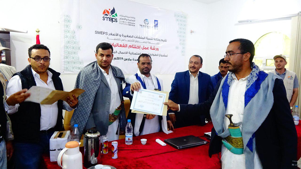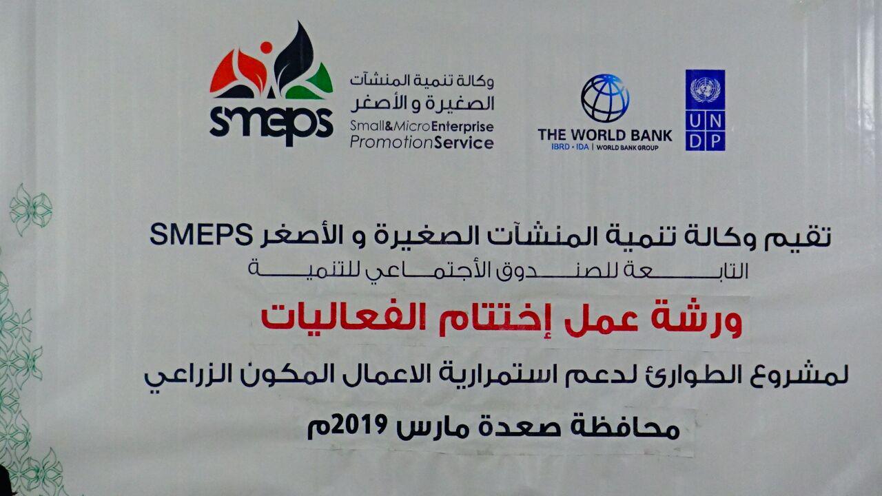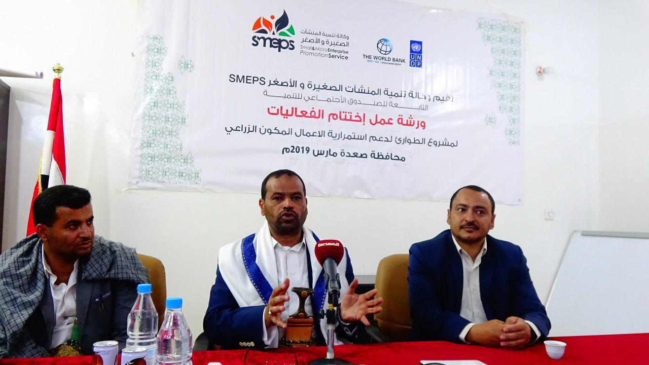 اختتمت بمحافظة صعدة ورشة عمل خاصة بمشروع الطوارئ لدعم استمرارية الاعمال المكون الزراعي والذي تقيمه وكالة تنمية المنشات الصغيرة والأصغر التابعة للصندوق الاجتماعي للتنمية لعدد 150 مزارع .