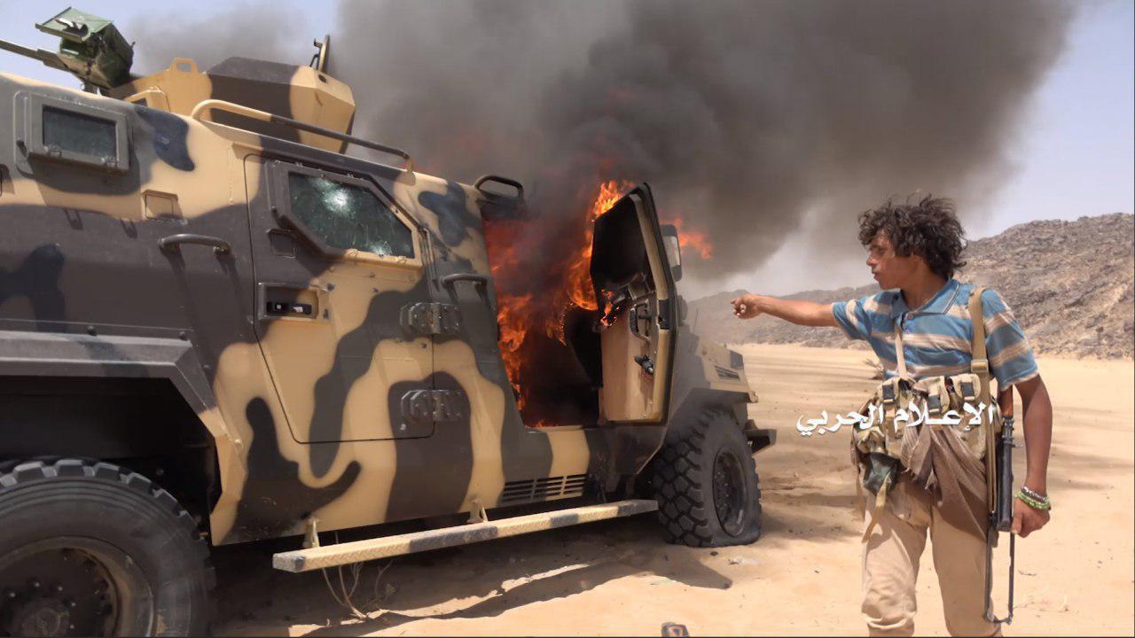 وتظهر المشاهد الآليات العسكرية التي دمرها أبطال الجيش واللجان الشعبية بالصواريخ الموجه والعبوات الناسفة وتم إحراقها بالولاعات.