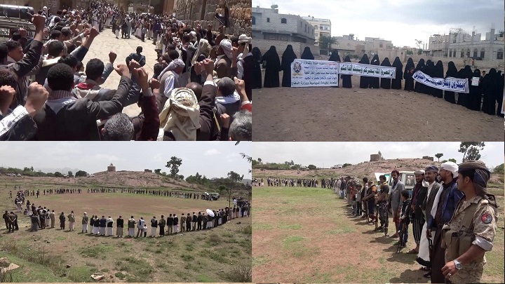 متابعات | 12 أبريل | اصعدة : نيوز: نظمت وقفة شعبية في مديرية بعدان بمحافظة إب تنديدا بجرائم قوى العدوان وانتهاكاتهم المتكررة بحق المواطنين.