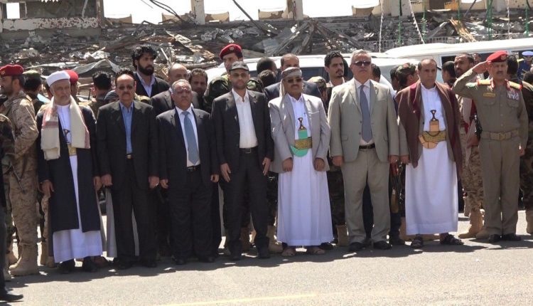 ووضع الرئيس المشاط إكليل من الزهور على ضريح الشهيد الرئيس الصماد ومرافقيه وقرأ الفاتحة على أرواحهم الطاهرة، ثم عُزفت الموسيقى العسكرية والنشيد الوطني.